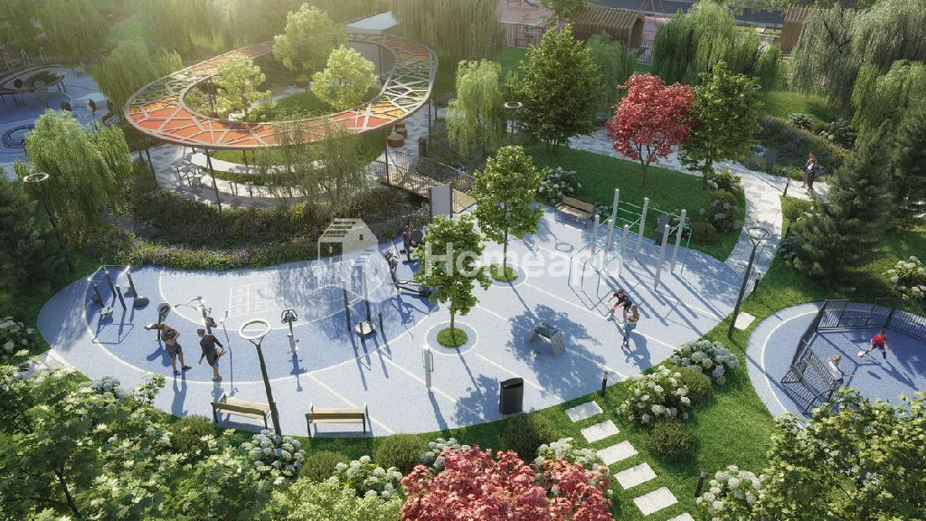 Двор создан как водный заповедник с прогулочным маршрутом в виде Дождевой аллеи. Креативное озеленение превращает двор в живописный уголок для отдыха жителей любого возраста - на спортивных и детских площадках, в уютных и тихих лаунж-зонах. Закрытая территория обеспечена круглосуточной охраной, системами контроля доступа и